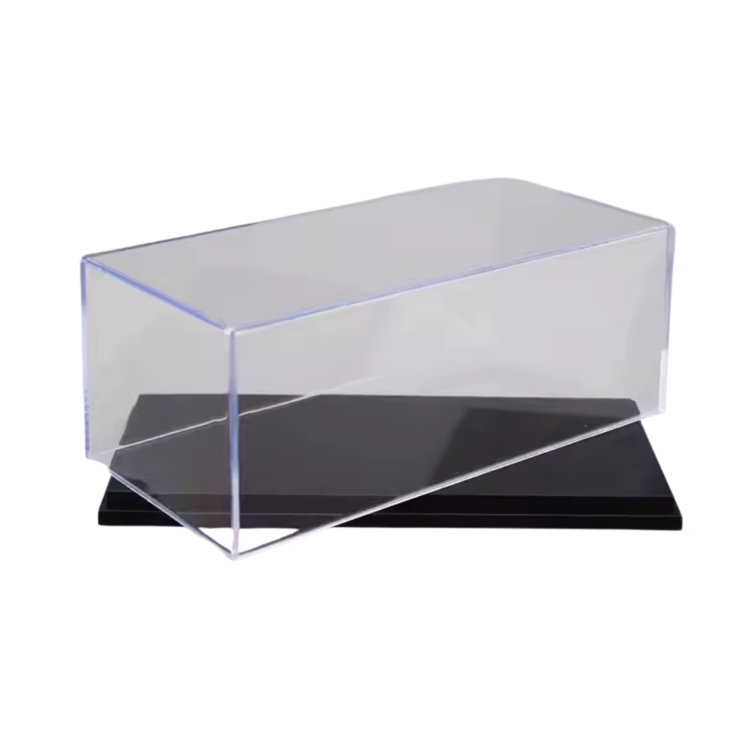Base exhibidora con cubierta de acrílico transparente.